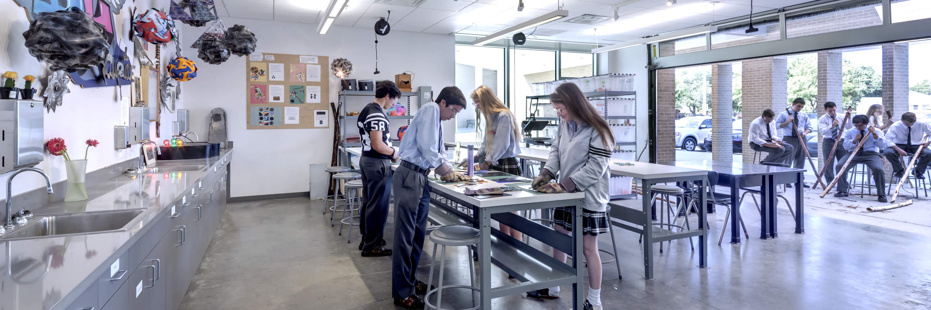From 2011 through 2016 Bishop Lynch High School went through a multi-phase design and construction transformation that not only unified the disparate 50-year-old campus, but completely re-imagined the entire campus from the inside out. The overall planning concept simplified and connected various program pieces into a coherent whole by bookending the existing campus with two building additions, while modernizing the remaining interior of the school. Located on the west side of the campus, the Center for Advancement & Academics provides a reimagined formal entry providing clarity and purpose for visitors, teachers and students. A connective pathway stretching through the entire campus, symbolically named “The Way”, provides an engaging touchtone for students and families while providing interior organization from the academics to athletics. This pathway encourages movement and a place to celebrate the many academic and athletic achievements of Bishop Lynch’s students, while honoring the many who have served the school in the past.
