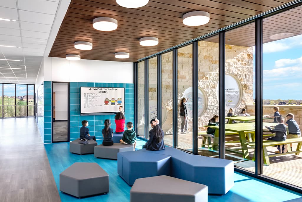 At the onset of planning for the new 120,000-square-foot Rolling Hills Elementary School, the district challenged the design team to move beyond traditional models and support its forward-thinking educational goals. The resulting design reimagines the elementary school experience, creating a distinctive and flexible hub for learning that responds to the evolving needs of students and educators. Emphasizing transparency, abundant natural light, and strong connections to the outdoors, the school fosters openness, well-being, and an engaging environment that supports both learning and community. Thoughtfully organized learning neighborhoods and shared spaces encourage collaboration, adaptability, and a sense of belonging. Together, these elements create an inspiring setting that empowers students and teachers while reflecting the district’s commitment to innovative education.
