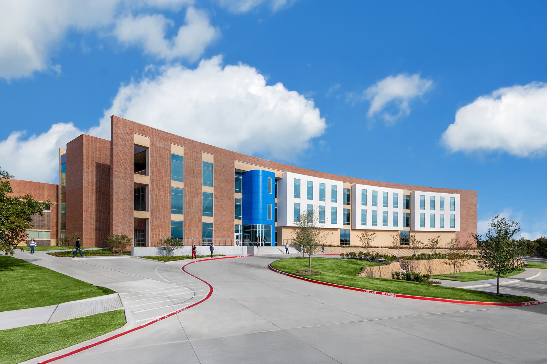 The new Career and Technical Education (CTE) and Classroom Addition at Byron Nelson High School provides flexible, future-ready learning spaces designed to accommodate the school’s robust student population growth. The three-story, 75,000-square-foot addition offers collaborative academic environments for an additional 700 students, increasing total campus capacity to 3,200 students.